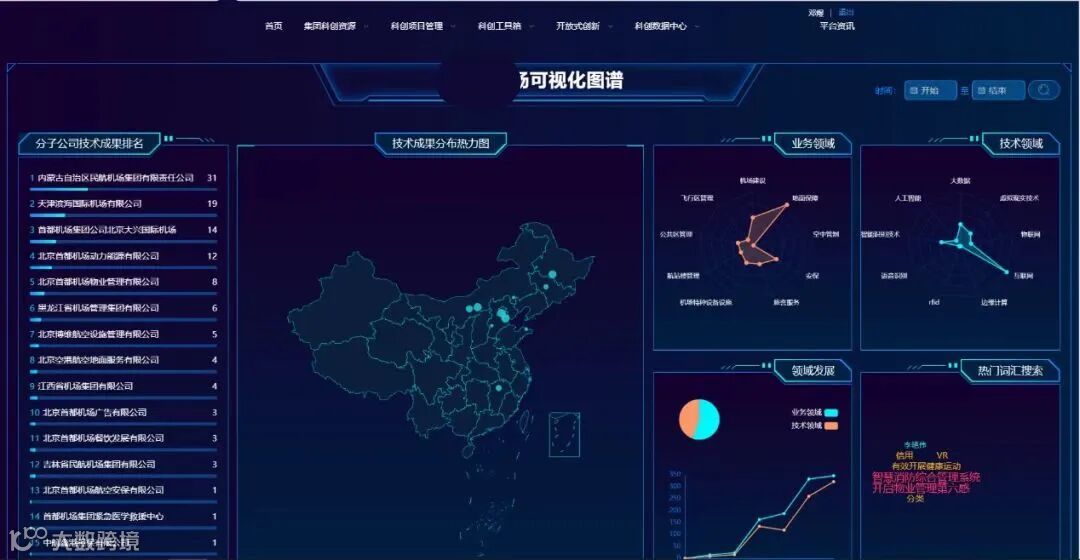 该数字化系统已服务多家头部企业,深受行业客户好评。以某机场集团数字化平台为例,在全面提升自主创新能力、构建新发展格局的要求下,中技所团队从内部资源整合、数字化项目管理、工具实施、情报中心与数据分析等方面逐步攻坚,搭建其数字化系统。截至2021年12月,该系统整合了集团48家二级单位多年研发项目产出的科技成果278项,科创资讯上万条;在项目管理方面,已完成立项申报和奖励等流程数字化,同时加入知网资源、创新调研等科创管理创新工具,支持可视化数据成果跟踪与输出,实现创新资源高度聚集,形成了强大的创新攻关合力。