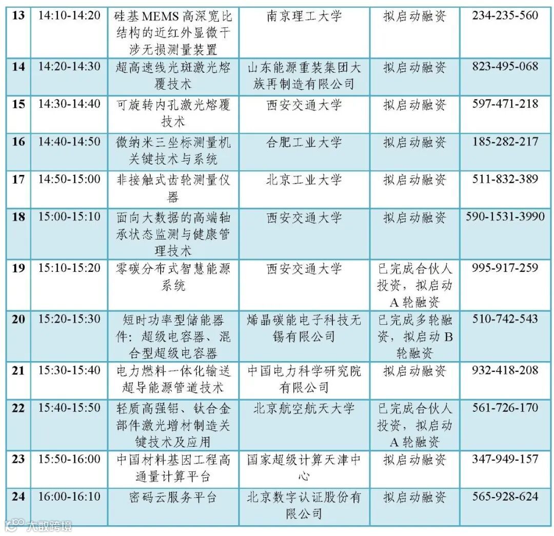 第2路演室:拟介绍24个项目,主要涉及材料、制造基础、能源和网络安全领域;其中上午介绍12个项目,下午介绍12个项目。13:30-14:10将安排知名投资人讲投资。