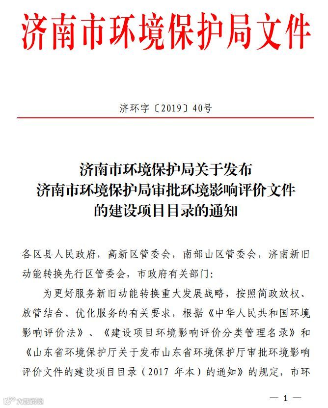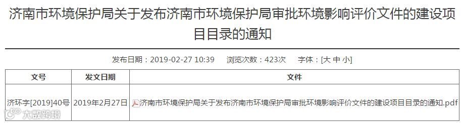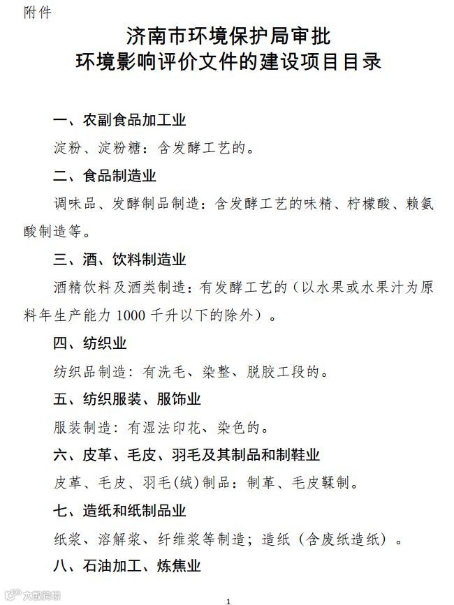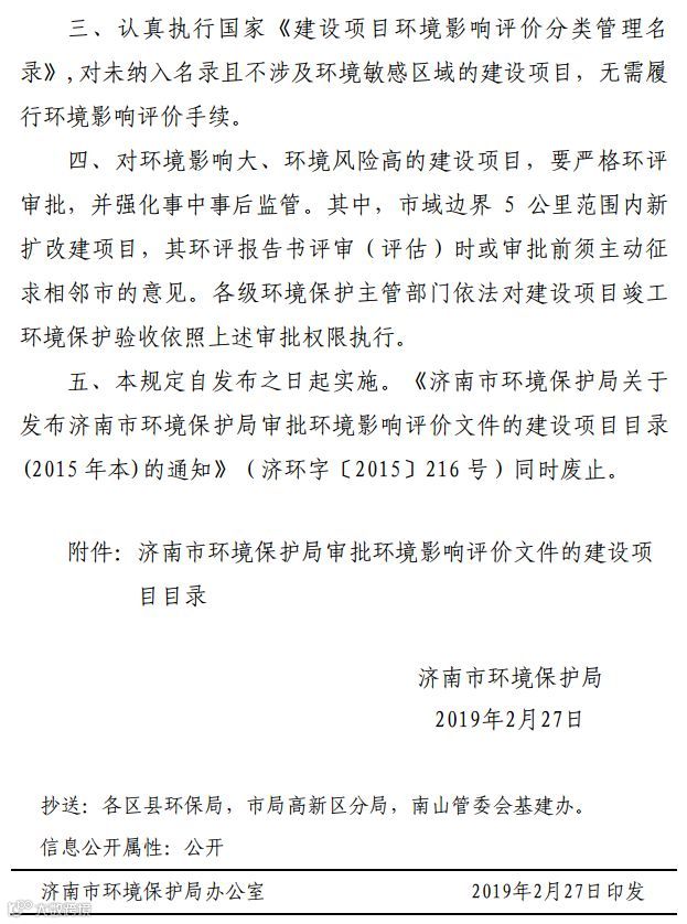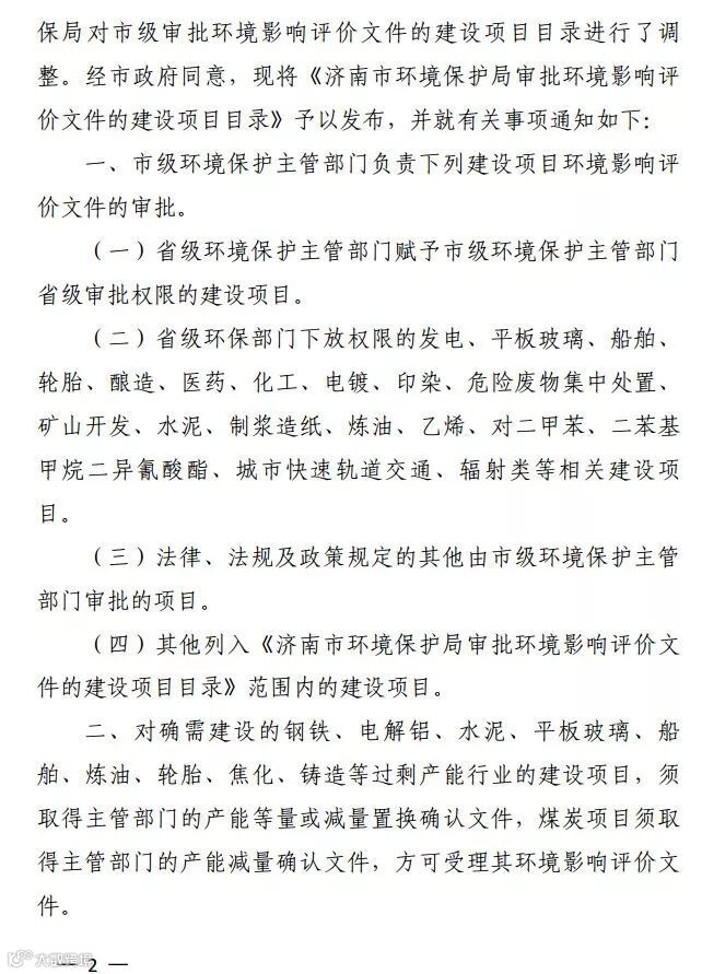 济南市环境保护局关于发布济南市环境保护局审批环境影响评价文件的建设项目目录的通知