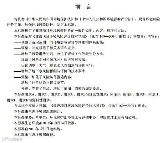 《环境风险评价技术导则》(HJ 169-2018)今天实施!