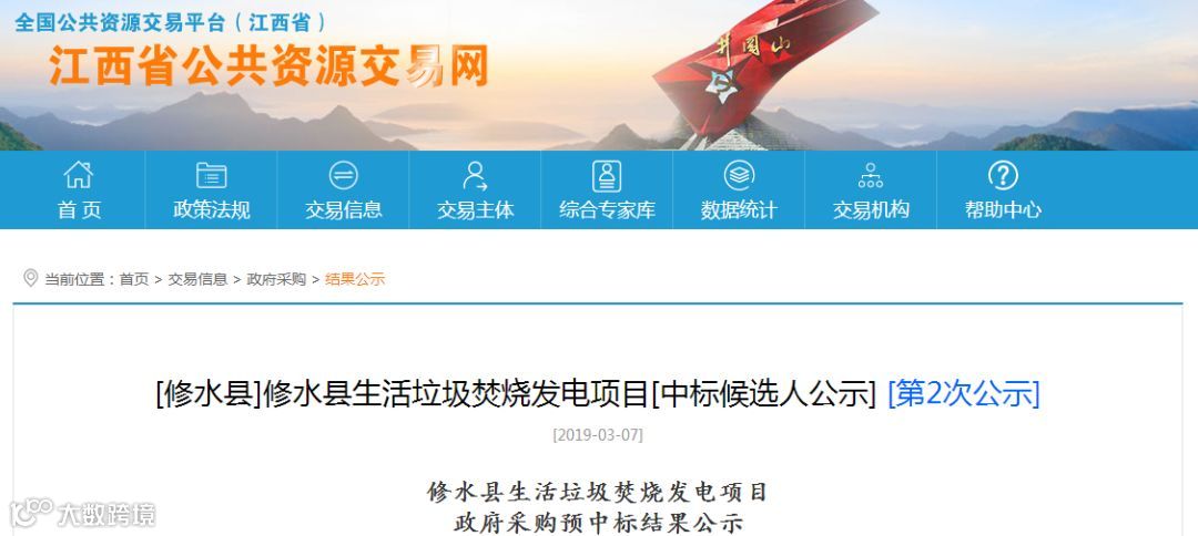 [修水县]修水县生活垃圾焚烧发电项目[中标候选人公示] [第2次公示]
