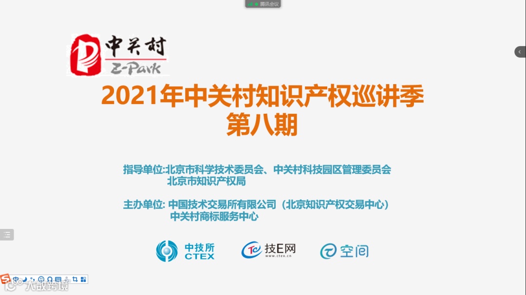 2022年4月27日下午,在北京市知识产权局指导下,由中国技术交易所(北京知识产权交易中心)、中国技术交易所有限公司知识产权纠纷人民调解委员会、中关村商标服务中心主办,中技所航天基地技术转化服务中心、西安科统企业孵化有限公司、西咸科转孵化创新体协办的2022年度知识产权巡讲季第二期活动,在线上成功举办。