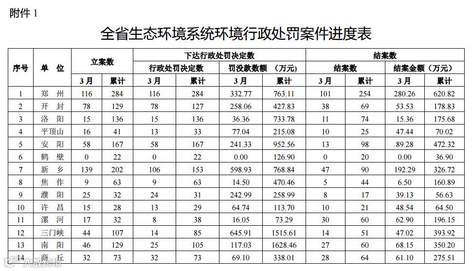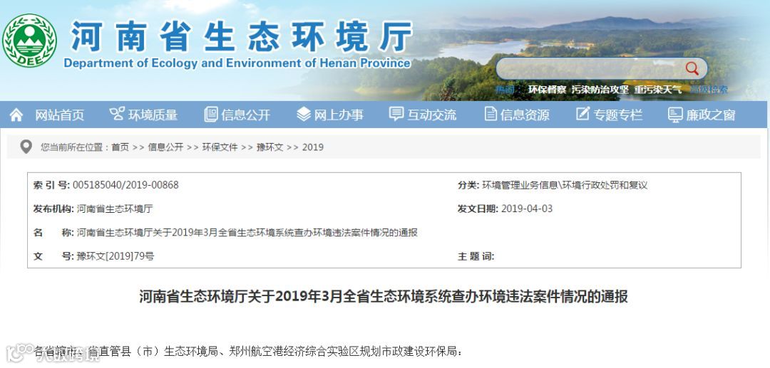河南省生态环境厅关于2019年3月全省生态环境系统查办环境违法案件情况的通报