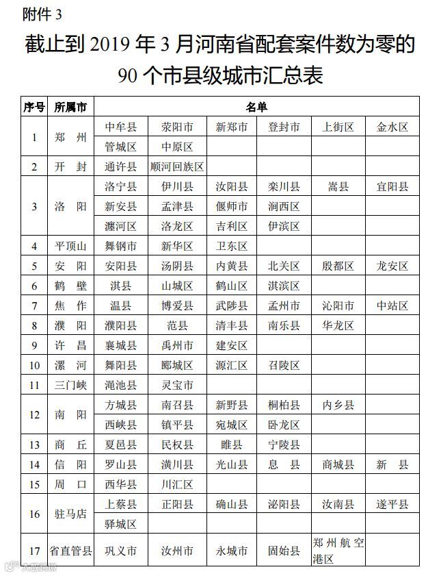 附件3 截止到2019年3月河南省配套案件数为零的90个市县级城市汇总表.pdf
