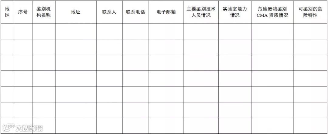 危险废物鉴别机构基本情况汇总表