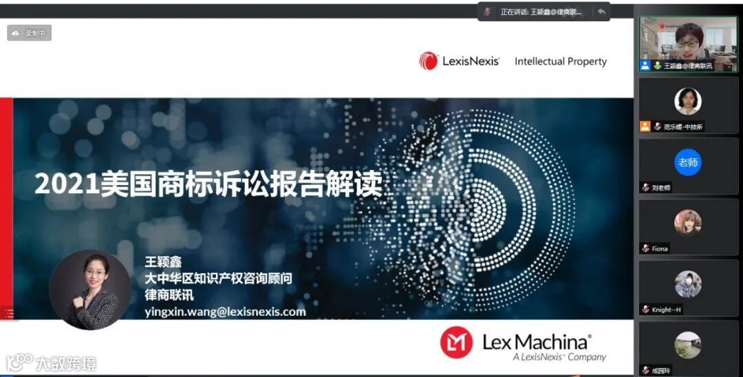 律商联讯大中华区知识产权咨询顾问王颖鑫解读了《2021年美国商标诉讼报告》,分析了新冠疫情对美国商标诉讼态势的影响,就美国商标案件的集中区域、美国商标律所的代理及案件情况、商标诉讼案件的结案与赔偿情况等方面进行分析介绍。为企业做好涉美国的商标工作与风险防范提供了新思路。