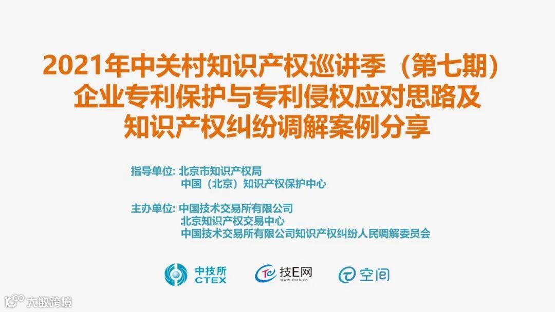2022年3月31日下午,在北京市科委、中关村管委会指导下,中关村知识产权保护中心的大力支持下,由中国技术交易所(北京知识产权交易中心)、中国技术交易所有限公司知识产权纠纷人民调解委员会、中关村商标服务中心主办,西安科统企业孵化有限公司、西咸科转孵化创新体协办的2022年度知识产权巡讲季第一期活动,在线上成功举办。