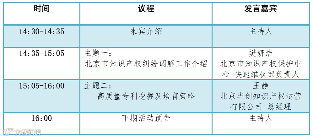 为贯彻落实中共中央办公厅、国务院办公厅印发《建设高标准市场体系行动方案》的精神,中国技术交易所将着力建设国家知识产权和科技成果产权交易机构,在全国范围内开展知识产权转让、许可等运营服务,加快推进技术交易服务发展。为进一步提升企事业单位、高校科研院所和社会组织的知识产权保护意识及工作水平,推动知识产权工作迈上新台阶,由北京市知识产权局、中国(北京)知识产权保护中心指导,中国技术交易所(北京知识产权交易中心)、中国技术交易所有限公司知识产权纠纷人民调解委员会主办,北京毕创知识产权运营有限公司、北京知创大为科技有限公司协办的2021年“中关村知识产权巡讲季(第九季)第六期”培训定于10月12日(星期二)14点30分举行。本次培训主题为“知识产权纠纷调解及高质量专利挖掘与培育”活动采取线上模式分享。
