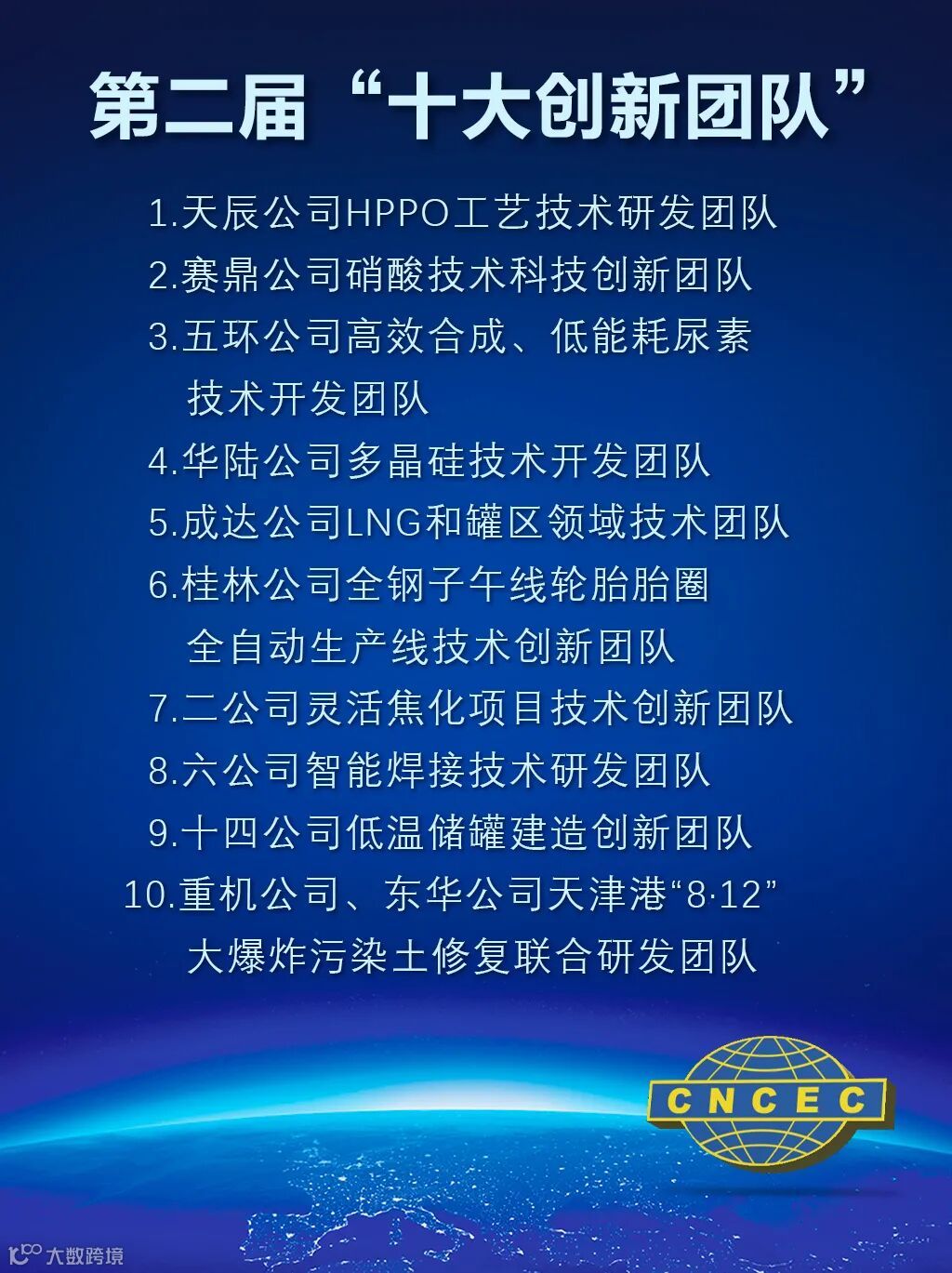 为表彰先进,进一步发挥创新典型在企业创新工作中的带动作用,激发创新活力,经集团公司组织评选,集团公司党委常委会研究决定,授予10支团队中国化学工程集团有限公司第二届“十大创新团队”称号。