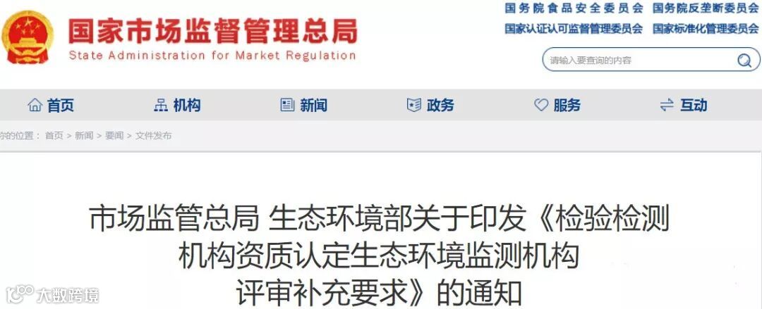 为进一步规范生态环境监测机构资质管理,提高生态环境监测机构监测(检测)水平,市场监管总局、生态环境部组织制定了《检验检测机构资质认定生态环境监测机构评审补充要求》,现予以发布。