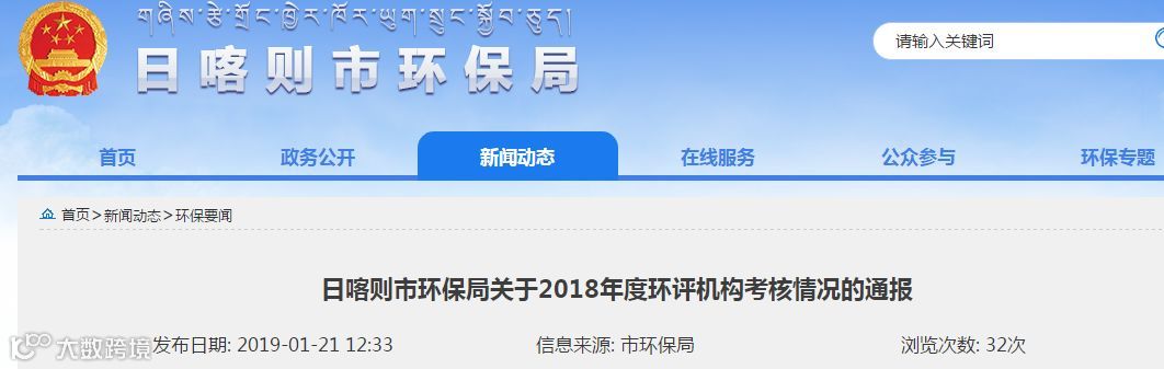 日喀则市环保局关于2018年度环评机构考核情况的通报