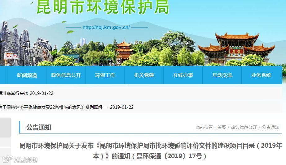 五、本通知自2019年2月22日起实施,《昆明市环境保护局审批环境影响评价文件的建设项目目录(2017年本)》(昆环保通〔2017〕345号)及与本通知不一致的其他文件相关内容即行废止。