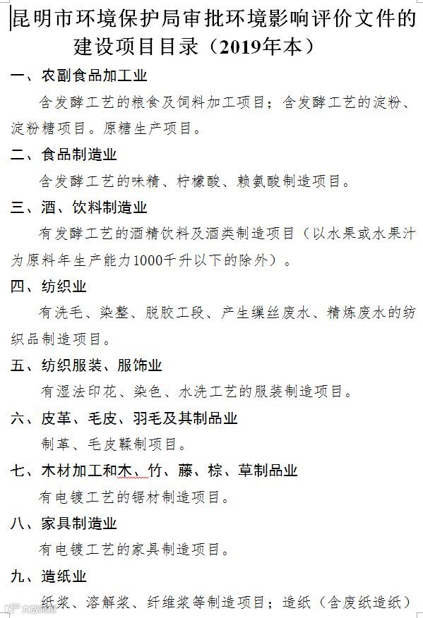 一、除生态环境部和云南省生态环境厅审批权限以外,列入《昆明市环境保护局审批环境影响评价文件的建设项目目录(2018年本)》(以下简称《目录》)的建设项目的环境影响评价文件,由市环境保护局负责审批。