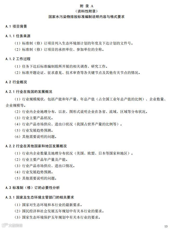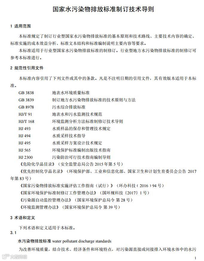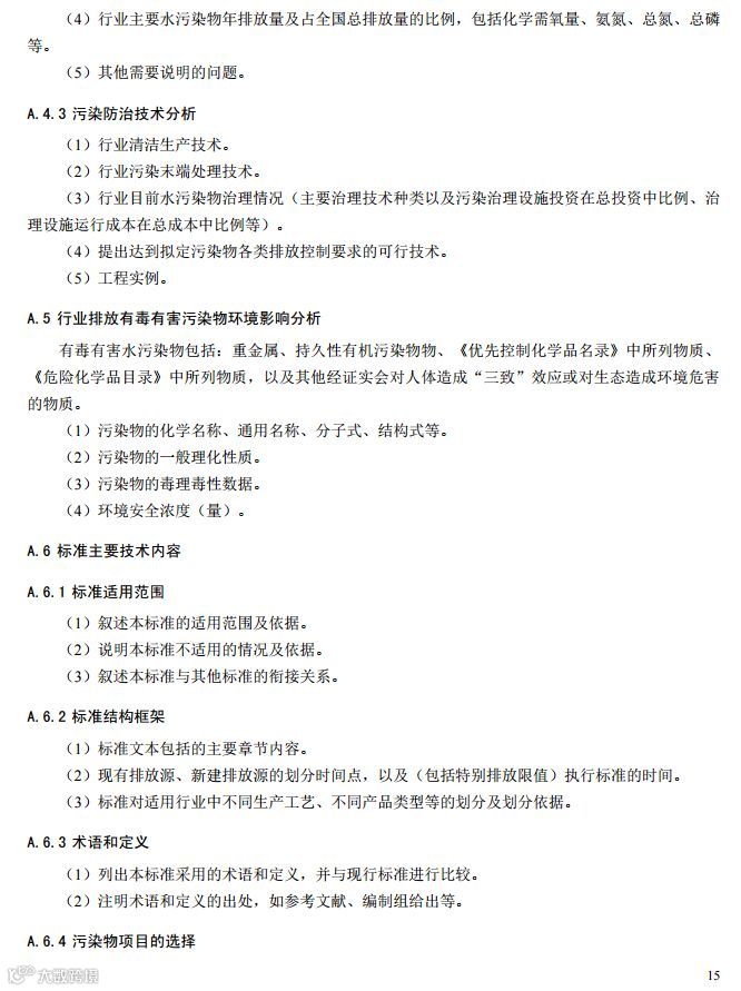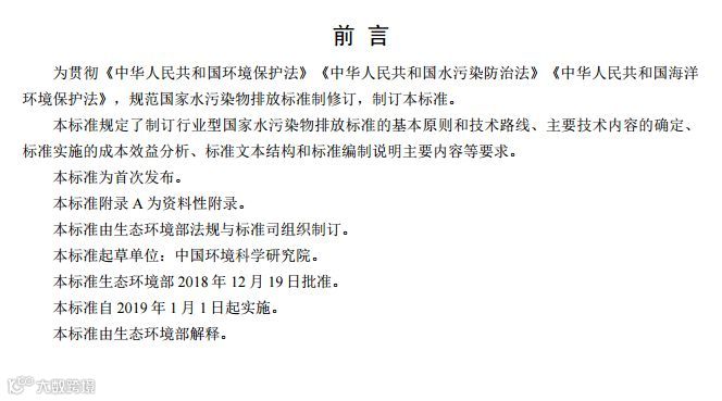 为贯彻《中华人民共和国环境保护法》《中华人民共和国水污染防治法》《中华人民共和国海洋环境保护法》,规范国家水污染物排放标准制修订,制订本标准。本标准规定了制订行业型国家水污染物排放标准的基本原则和技术路线、主要技术内容的确定、标准实施的成本效益分析、标准文本结构和标准编制说明主要内容等要求。本标准为首次发布。