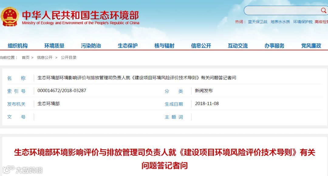 生态环境部环境影响评价与排放管理司负责人就《建设项目环境风险评价技术导则》有关问题答记者问