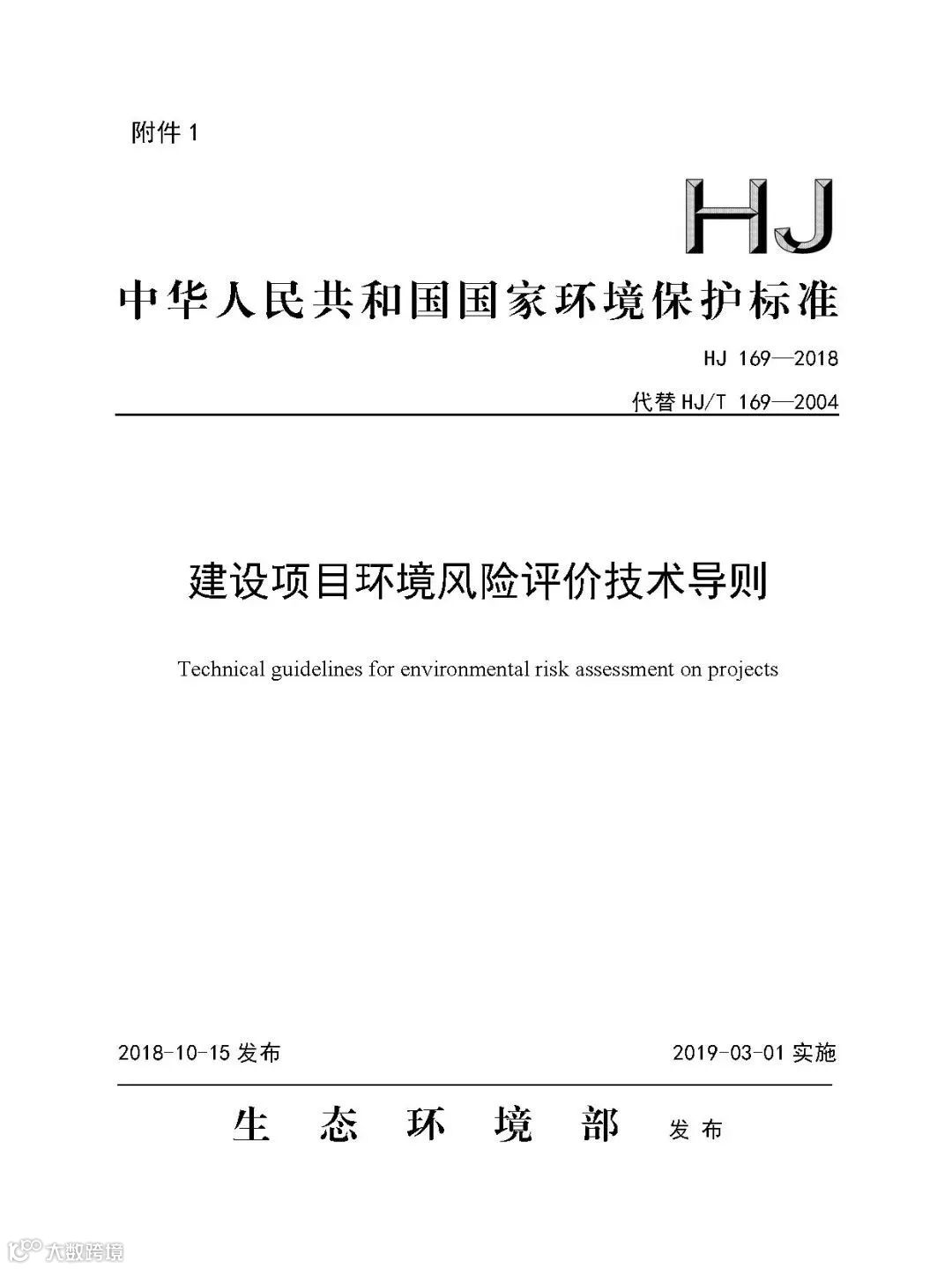 ( HJ 169—2018代替 HJ/T 169—2004 2019-03-01实施)
