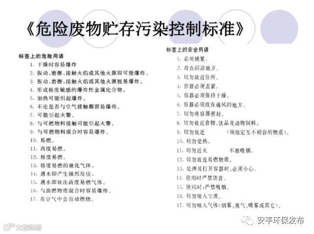 一级:发生危险废物流失、扩散、泄漏时,需紧急处理的。