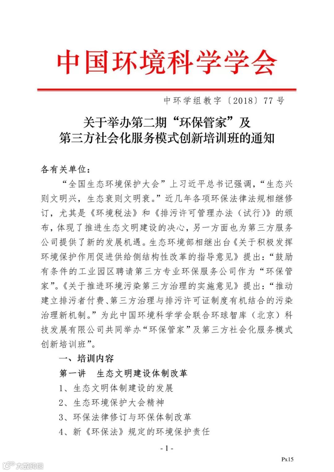 关于举办第二期“环保管家”及第三方社会化服务