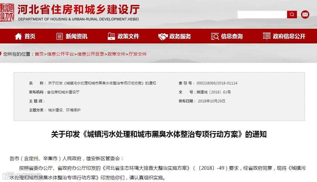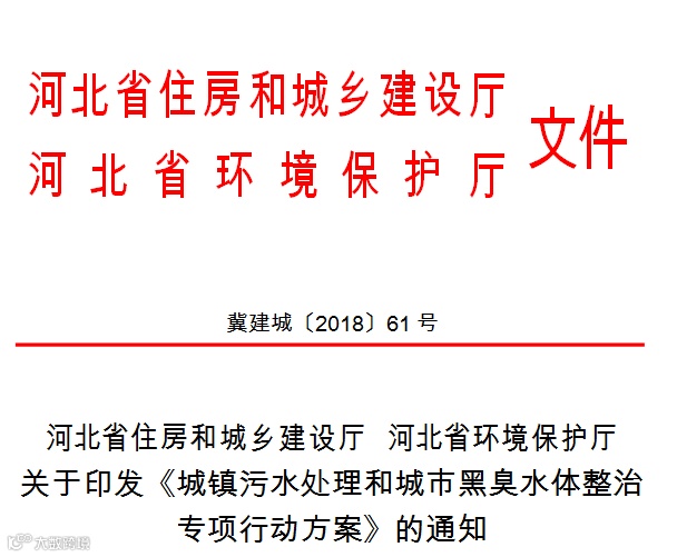 近日,河北省环境保护厅、住房和城乡建设厅等部门联合印发《城镇污水处理和城市黑臭水体整治专项行动方案》。