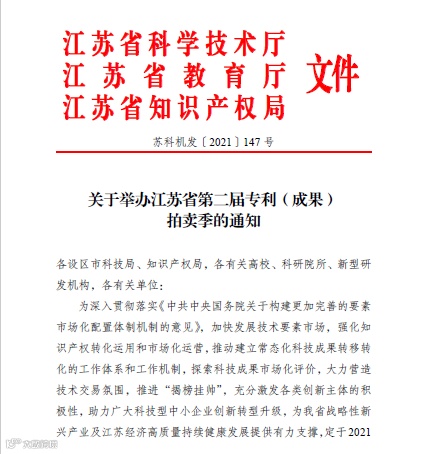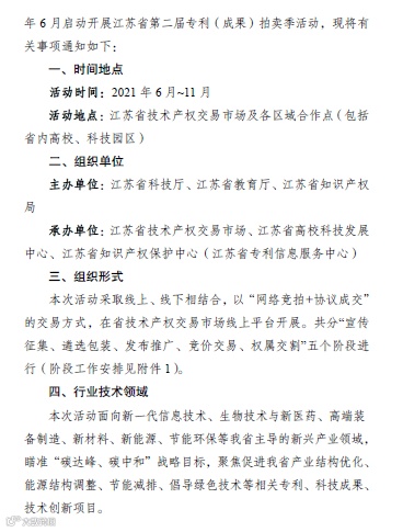 江苏省技术产权交易市场作为江苏省第二届专利(成果)拍卖季的承办单位,特委托中国技术交易所征集北京地区高校、科研院所、新型研发机构百万级以上优秀专利(成果)。本次活动面向新一代技术、生物技术与新医药、高端装备制造、新材料、新能源、节能环保等六个领域征集相关专利、科技成果和技术创新项目。