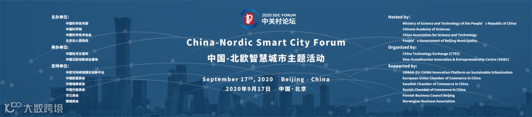 中国-北欧智慧城市主题活动将首场亮相2020中关村论坛技术交易发布大会。此次活动由中国科学技术部、中国科学院、中国科学技术协会、北京市政府主办。中国技术交易所和中国北欧创新创业基地承办。中欧可持续城镇化创新平台、欧盟商会、中国瑞典商会、中国丹麦商会、芬兰商会和挪威商会提供支持。