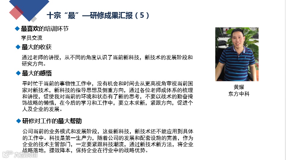 60余名海淀区重点企业、十百千工程企业、瞪羚计划企业、国家级高新技术企业家共聚一堂,学习交流。6天课程聚焦产业变革与技术创新,着力探讨海淀区企业在新一轮科技革命和产业变革的大潮中如何实现“技术创新、人才创新”的快速发展新模式。通过专家的授课讲解、经验分享及近距离体悟“利益亚于品德”的利亚德精神和创新经验,参训企业家对学科发展前沿、技术发展趋势有了更深的理解,在理论性、实践性和专业性上有了质的提升。