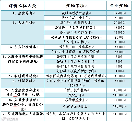 备注:凡符合以上政策的入园企业,所申报事项经武汉经济开发区政府审核验证后,均可于次年兑现奖励补贴。