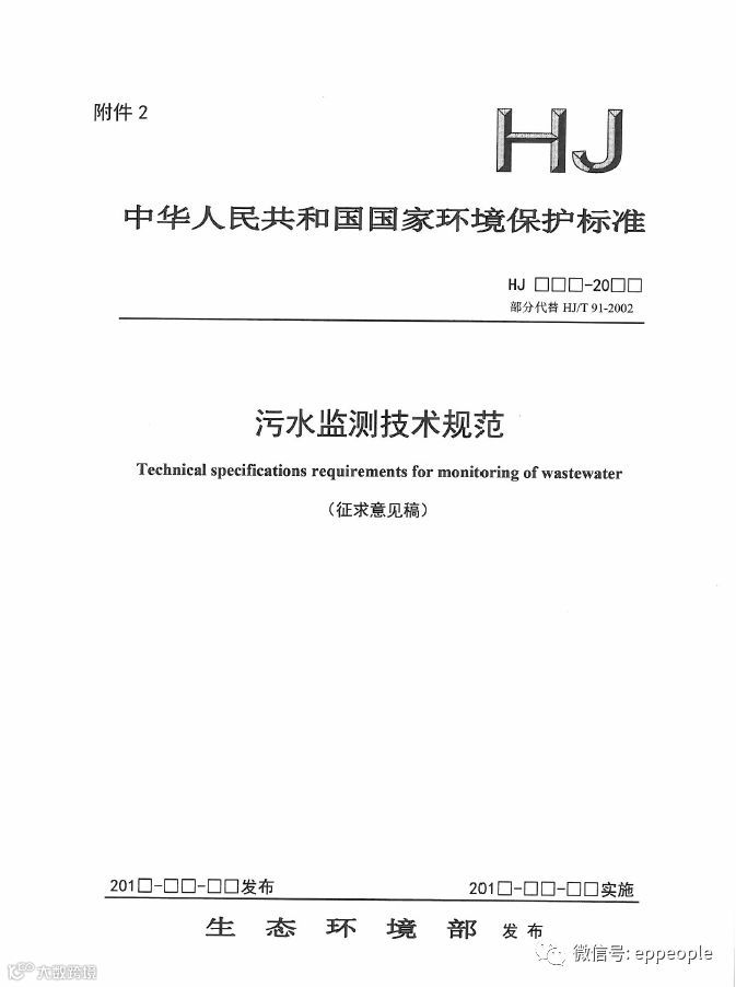 为贯彻《中华人民共和国环境保护法》,保护环境,保障人体健康,提高环境管理水平,规范生态环境监测工作,生态环境部决定制定《污水监测技术规范》国家环境保护标准。目前,标准编制单位已完成征求意见稿。