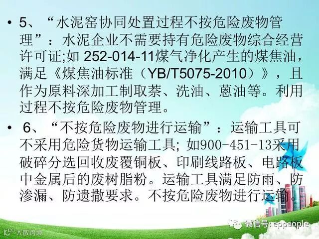 “水泥窑协同处置过程不按危险废物管理”:水泥企业不需要持有危险废物综合经营许可证;