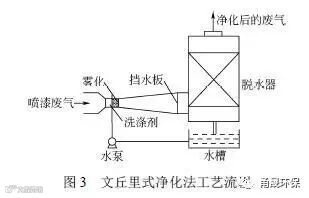 湿式净化法是依据相似相溶原理,通过溶剂吸收(或者化学吸收)喷漆废气中的漆雾,常用的湿式净化法有水帘式、无泵水幕式、文丘里式、水旋式等处理净化法。