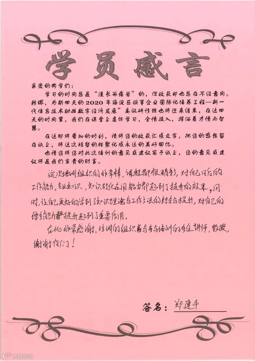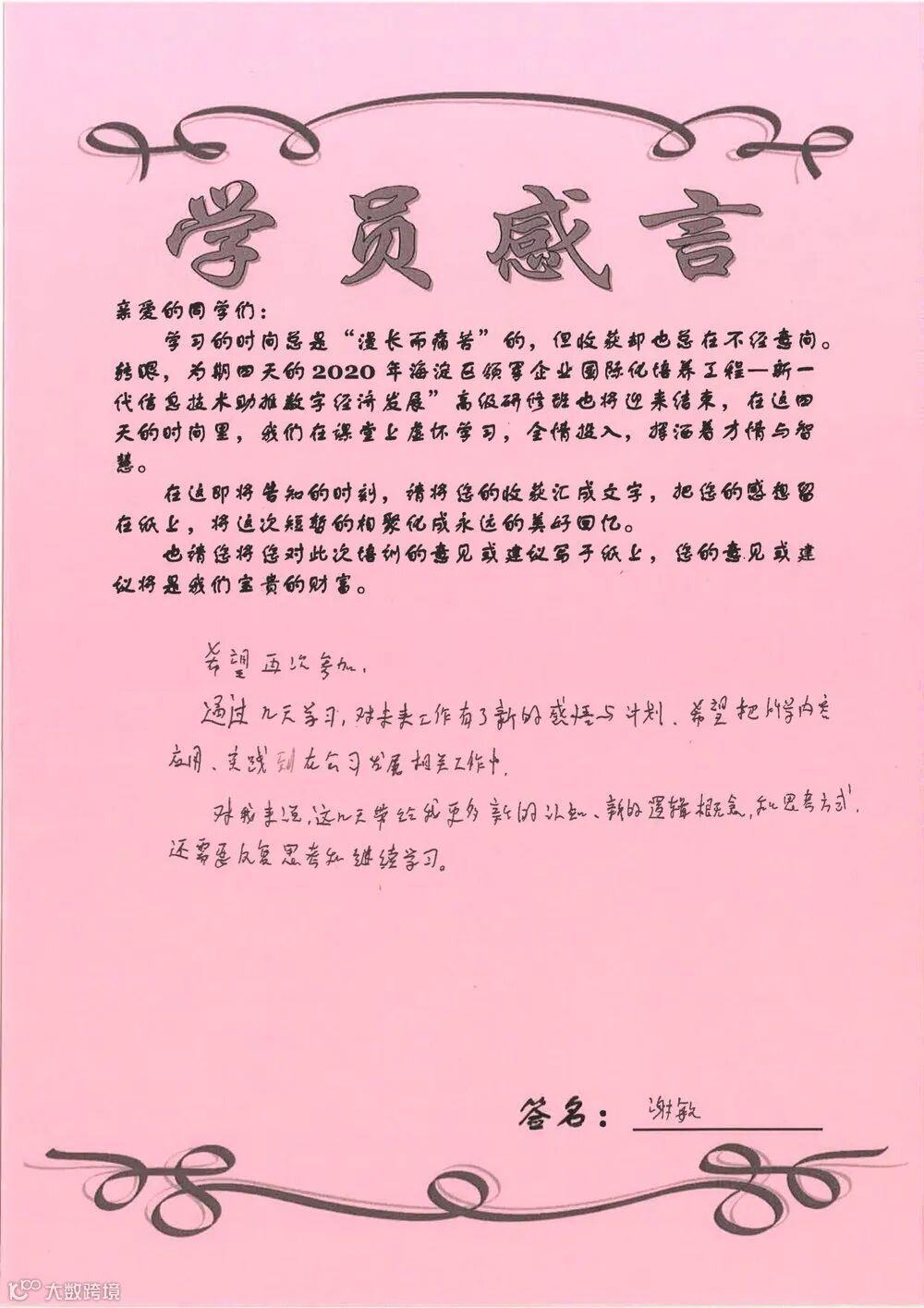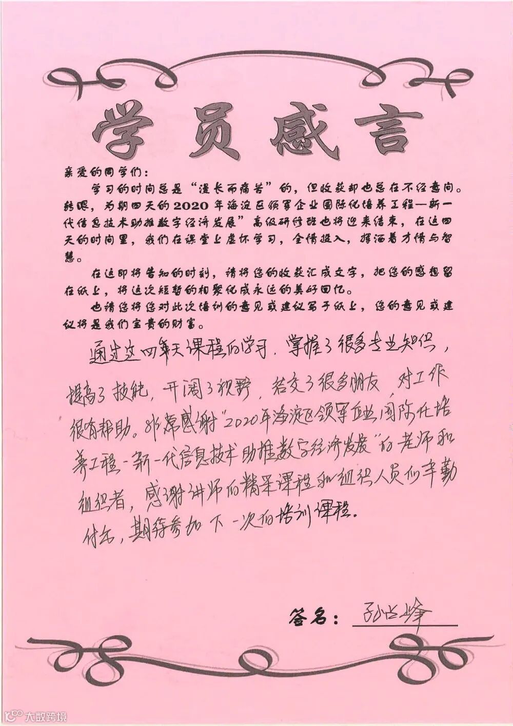 四天的授课学习,提升了学员的专业知识水平,并通过学员间的交流互动促进了知识和信息的流通,同时增强了学员间的凝聚力。此次培训班主题鲜明、内容丰富、形式多样,一方面为学员带来了前沿的行业知识,助力学员加深对新一代信息技术产业当前形势和发展趋势的认识,掌握新一代信息技术及应用实践;另一方面通过行业标杆企业参访,开拓了学员们的视野,对学员从智力到实践提供全方位培养支持,为推进海淀区建设领军人才队伍贡献一份力量。