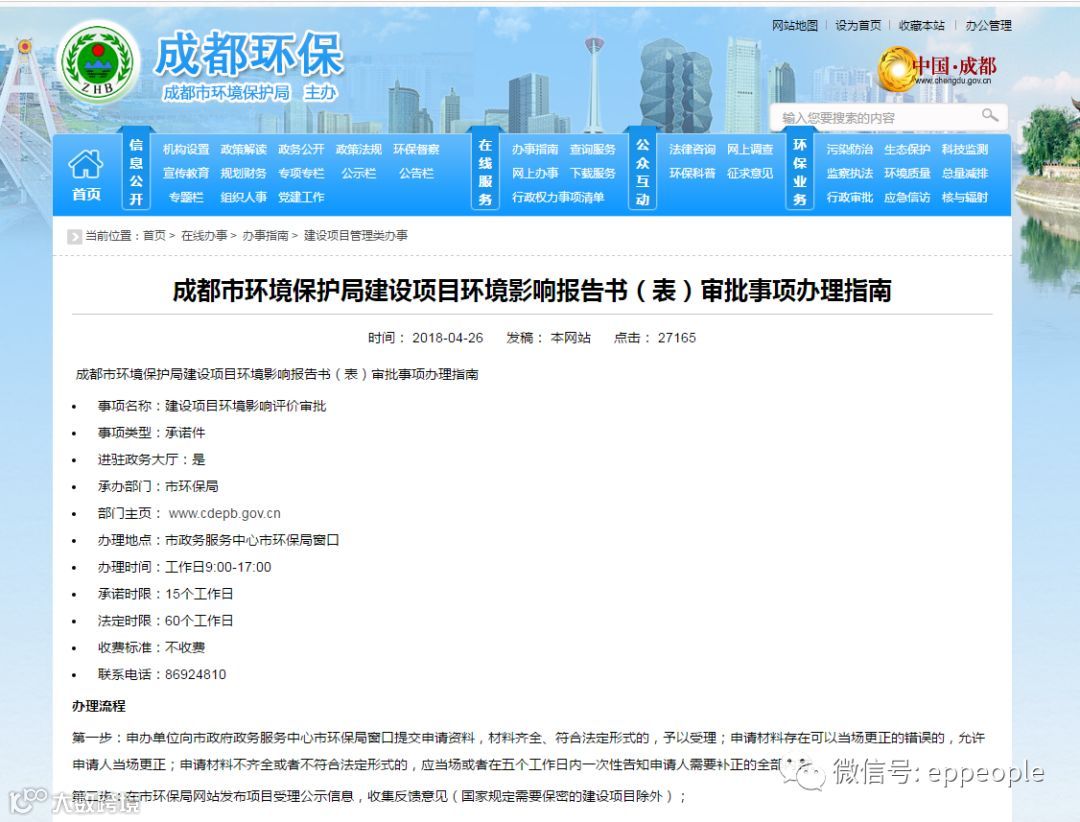 成都市环境保护局建设项目环境影响报告书(表)审批事项办理指南