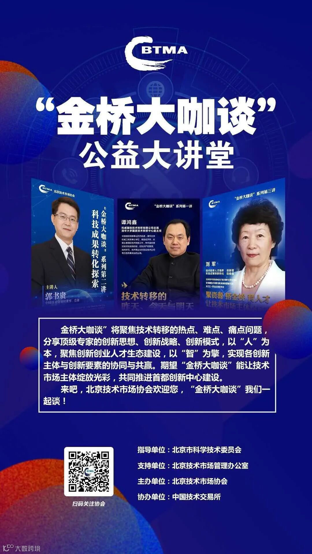 由北京技术市场协会发起,联合中国技术交易所等单位共同打造,聚集业内知名大咖的公益大讲堂“金桥大咖谈”正式开讲。