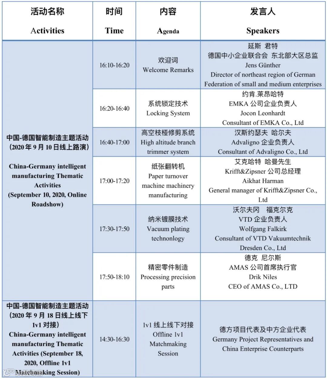 为深入落实国家创新驱动发展战略,促进中国制造产业转型升级,实现新旧动能转化,提高制造业国际发展水平,特在云端举办“2020中关村论坛技术交易大会--中德智能制造主题路演专场”活动,拟邀请国内外制造行业企业家、国际企业组织代表、知名投资机构等齐聚论坛,围绕智能制造、精密装备、装备制造等多方面展开一系列精彩纷呈的互动,通过加强统筹合作、聚焦全球资源,加速国际创新资源的聚集。