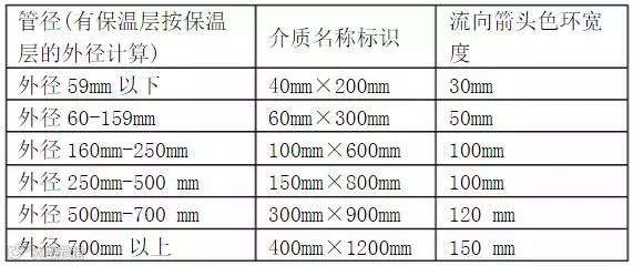 《GB7231-2003》中规定在管道上以宽为150mm的色环进行标识,考虑到管径的大小和管道的高低,及离操作面的远近,必须起到起到安全警示作用。所以根据现场情况,管道色环的大小可做相应的调整。