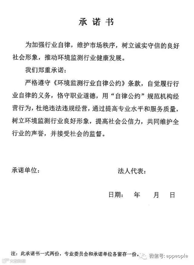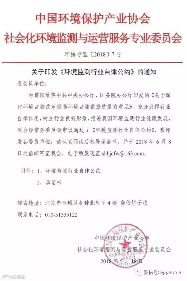 关于印发《环境监测行业自律公约》的通知(附自律公约和承诺书)
