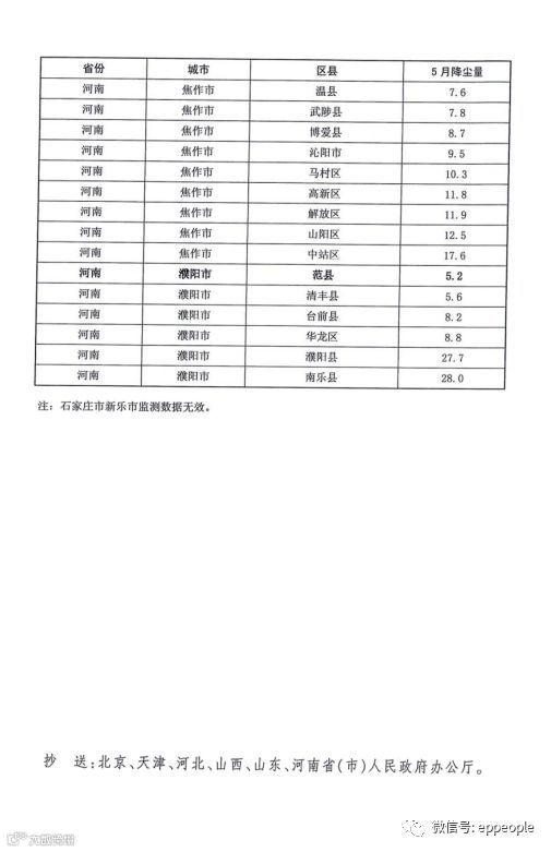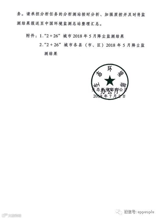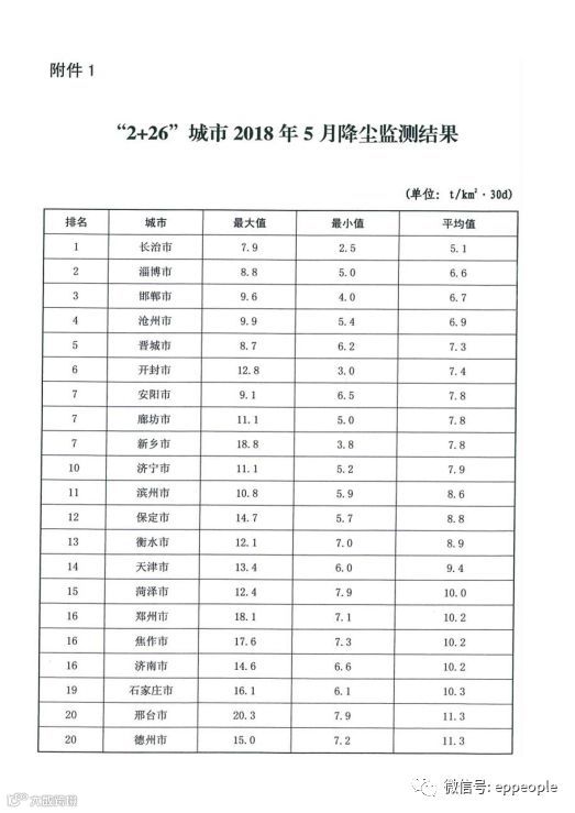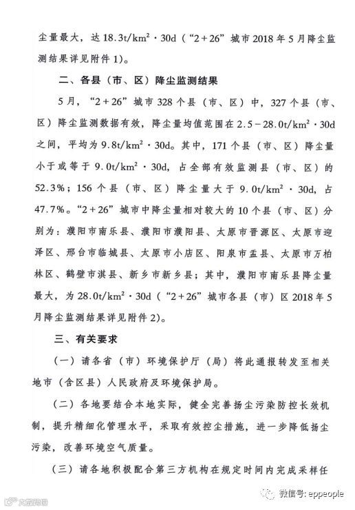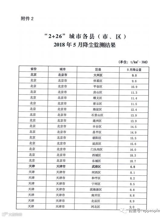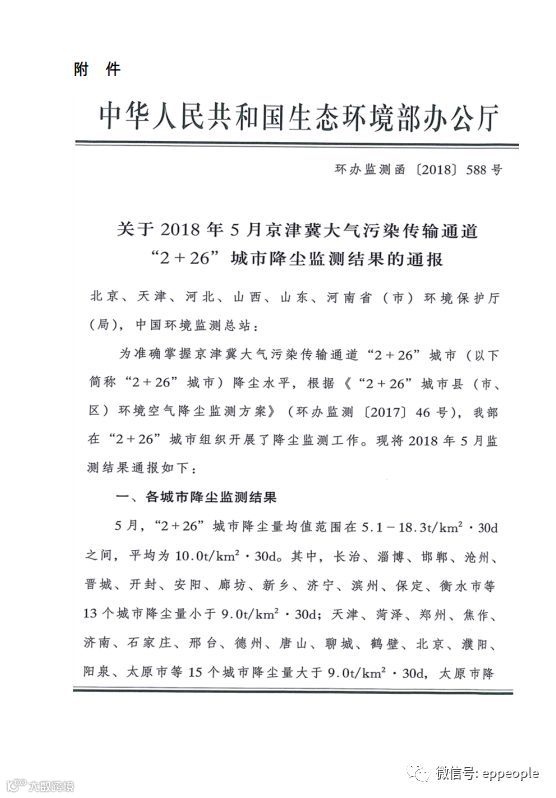 环境部关于2018年5月京津冀大气污染传输通道“2+26”城市降尘监测结果的通报