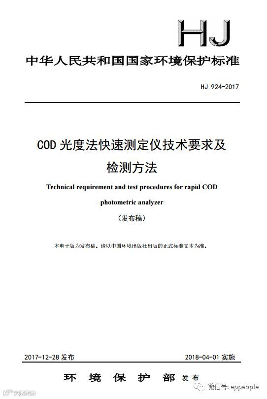 十一、《COD光度法快速测定仪技术要求及检测方法》(HJ924-2017);