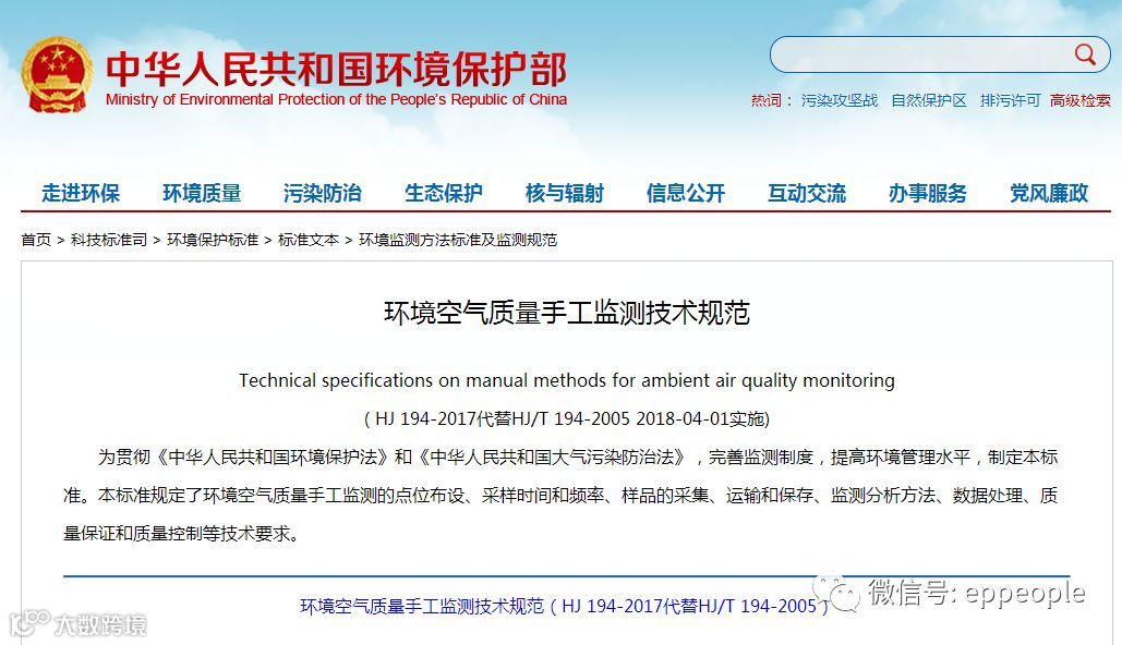环境保护部近日印发《环境空气质量手工监测技术规范》(HJ 194-2017)(以下简称《技术规范》)国家环境保护标准,环境保护部环境监测司负责人就《技术规范》的制定目的、内容等问题回答了记者提问。