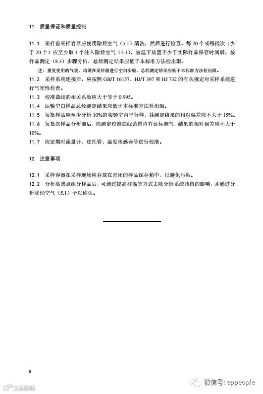七是突出质控要求:对质量保证与质量控制部分进行了大量的补充完善,包括基本质控要求和针对每种采样方法的特殊质控要求。