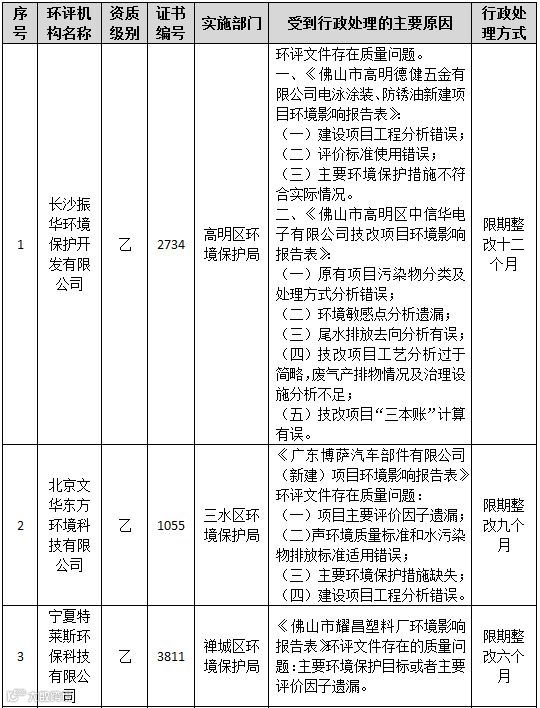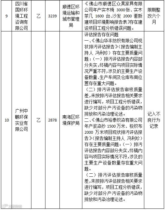 通报!二季度佛山处罚9家环评机构、7名环评工程师!