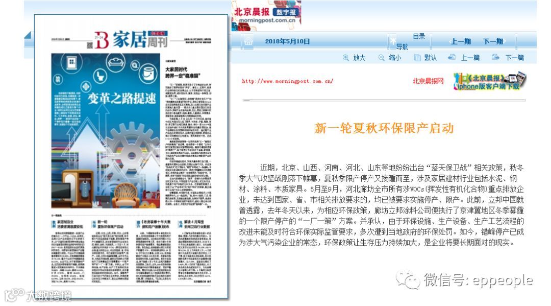 近期,北京、山西、河南、河北、山东等地纷纷出台“蓝天保卫战”相关政策,秋冬季大气攻坚战刚落下帷幕,夏秋季限产停产又接踵而至,涉及家居建材行业包括水泥、钢材、涂料、木质家具。5月至9月,河北廊坊全市所有涉VOCs(挥发性有机化合物)重点排放企业,未达到国家、省、市相关排放要求的,均已被要求实施停产、限产。此前,立邦中国就曾透露,去年冬天以来,为相应环保政策,廊坊立邦涂料公司便执行了京津翼地区冬季雾霾的一个限产停产的“一厂一策”方案。并承认,由于环保设施、生产设备、生产工艺流程的改进未能及时符合环保实际监管要求,多次遭到当地政府的环保处罚。如今,错峰停产已成为涉大气污染企业的常态,环保政策让生存压力持续加大,是企业将要长期面对的现实。