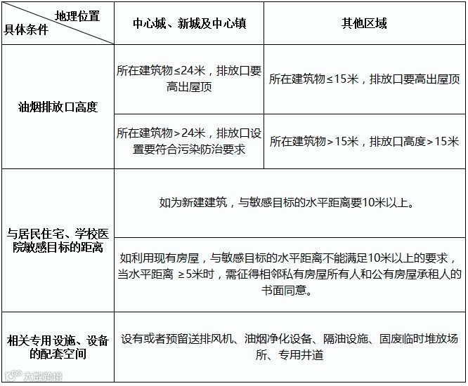 新建、改建、扩建产生油烟、异味和废气的餐饮服务项目的场所,必须符合以下条件:
