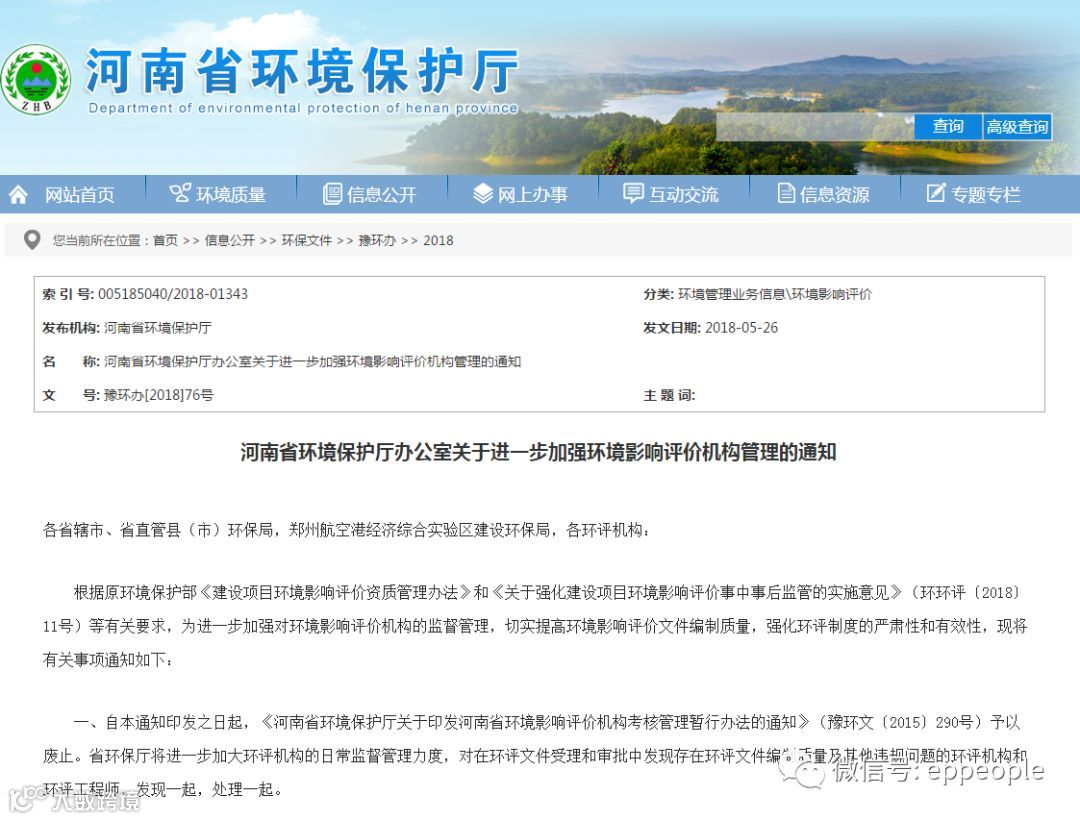 一、自本通知印发之日起,《河南省环境保护厅关于印发河南省环境影响评价机构考核管理暂行办法的通知》(豫环文〔2015〕290号)予以废止。省环保厅将进一步加大环评机构的日常监督管理力度,对在环评文件受理和审批中发现存在环评文件编制质量及其他违规问题的环评机构和环评工程师,发现一起,处理一起。
