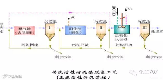 三级生物脱氮系统:由三个反应过程(氨化、硝化、反硝化)、建立的脱氮处理系统。