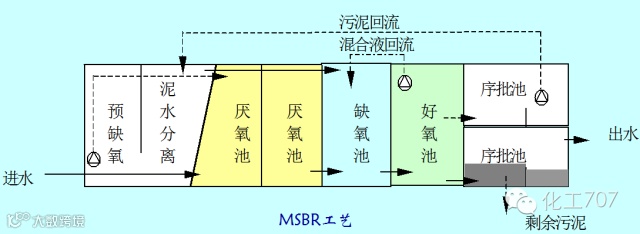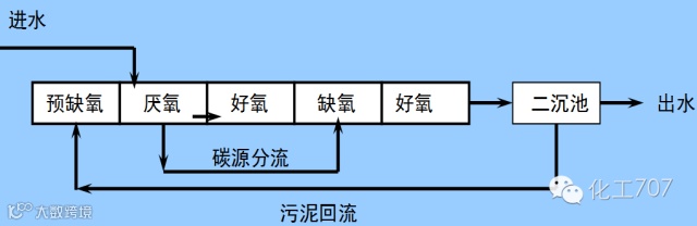 原水分段进去各段缺氧区,从而使得原水中的碳源可以充分用作反硝化碳源;由于原水分段进入各段,使得系统前后污泥浓度形成一定的梯度,前端高污泥浓度可以提高系统的抗冲击能力;同时分段进水工艺无需硝化液回流,使得该工艺的运行费用降低。