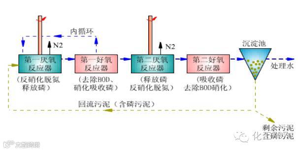 此工艺优点是去除效果好、各类菌类环境条件好,缺点是设备多,造价高,能耗大。