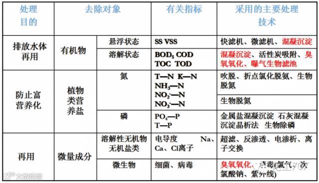 (1)预处理——生物处理和滤池之间,通常增设混凝沉淀(澄清或气浮池);