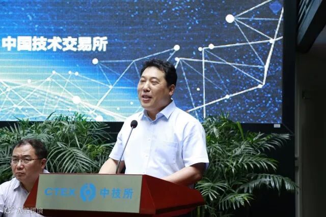 中国技术交易所郭书贵总裁致辞,介绍了中技所在科技成果转化方面的心得和经验,希望进一步加强好技术的推广与应用。