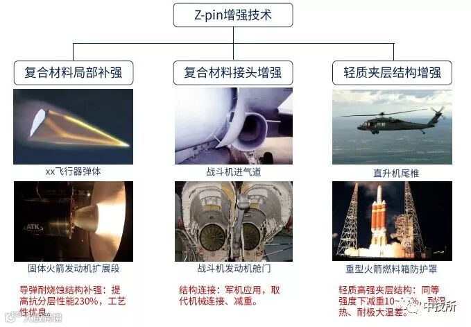 应用技术:突破了Z-pin拉挤、数控植入、超声植入等综合应用技术;